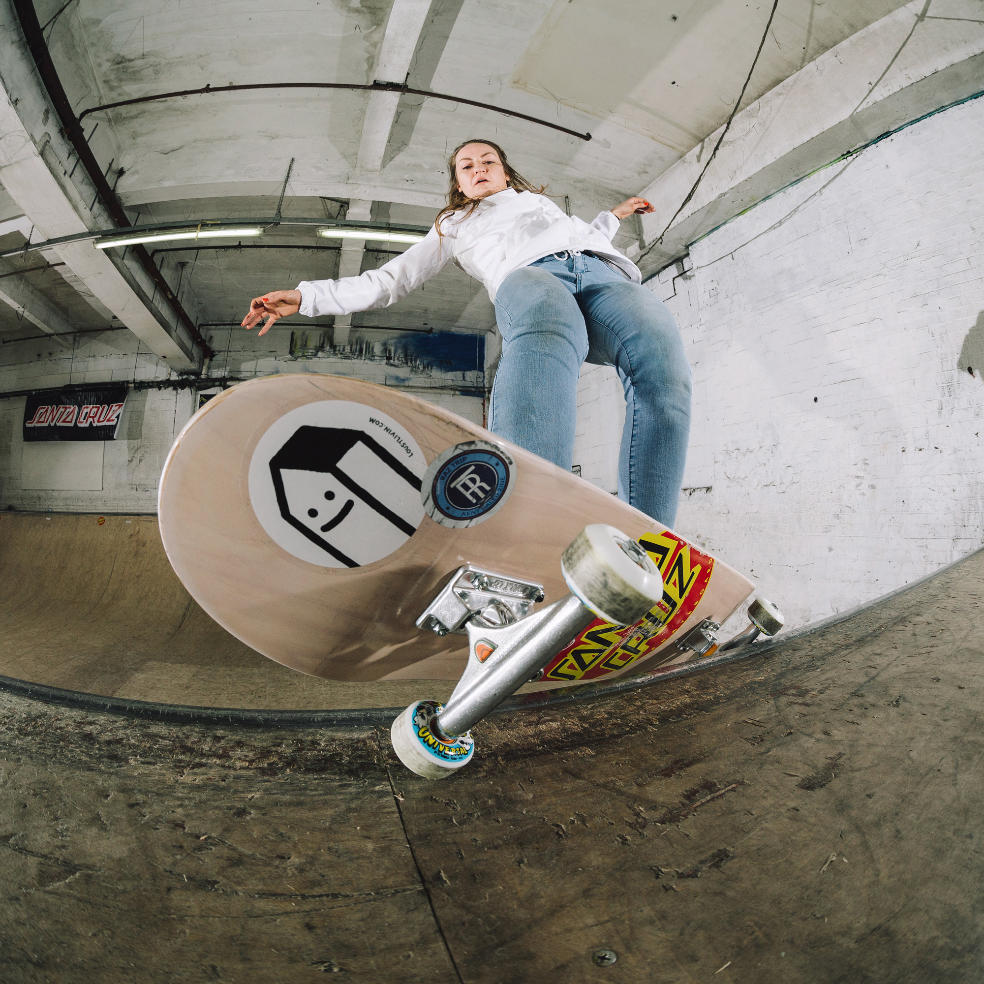 Danni: Another common one is, “I’ve always wanted to skate but felt intimidated to go to the park on my own, how do I get over this?” I will always ask where they are based and their age in the politest way possible (laughs), and then try to direct them to a girl’s nights in their area or towards local lady shredders who they could meet up with.