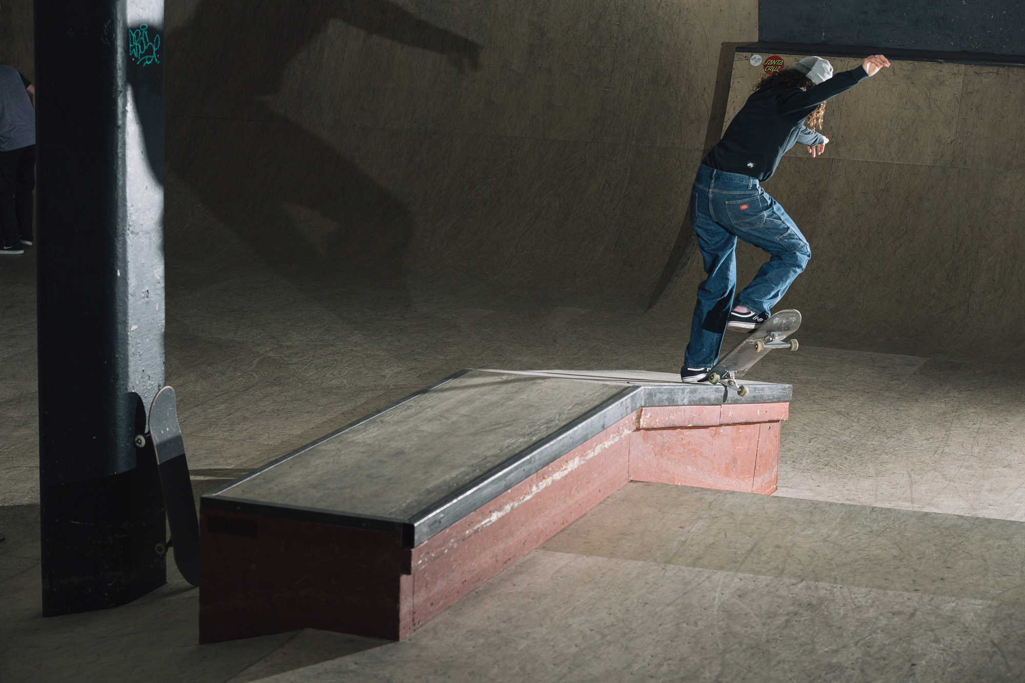 After a couple hours of free skate time, we started with a hip and block session. Georgie Winter kicked this off with a pop shove tail grab and boardslide line winning herself a limited edition Pabst x Santa Cruz board, which was swiftly backed up by Romy Haynes with a full cab over the hip, bagging herself some cash.