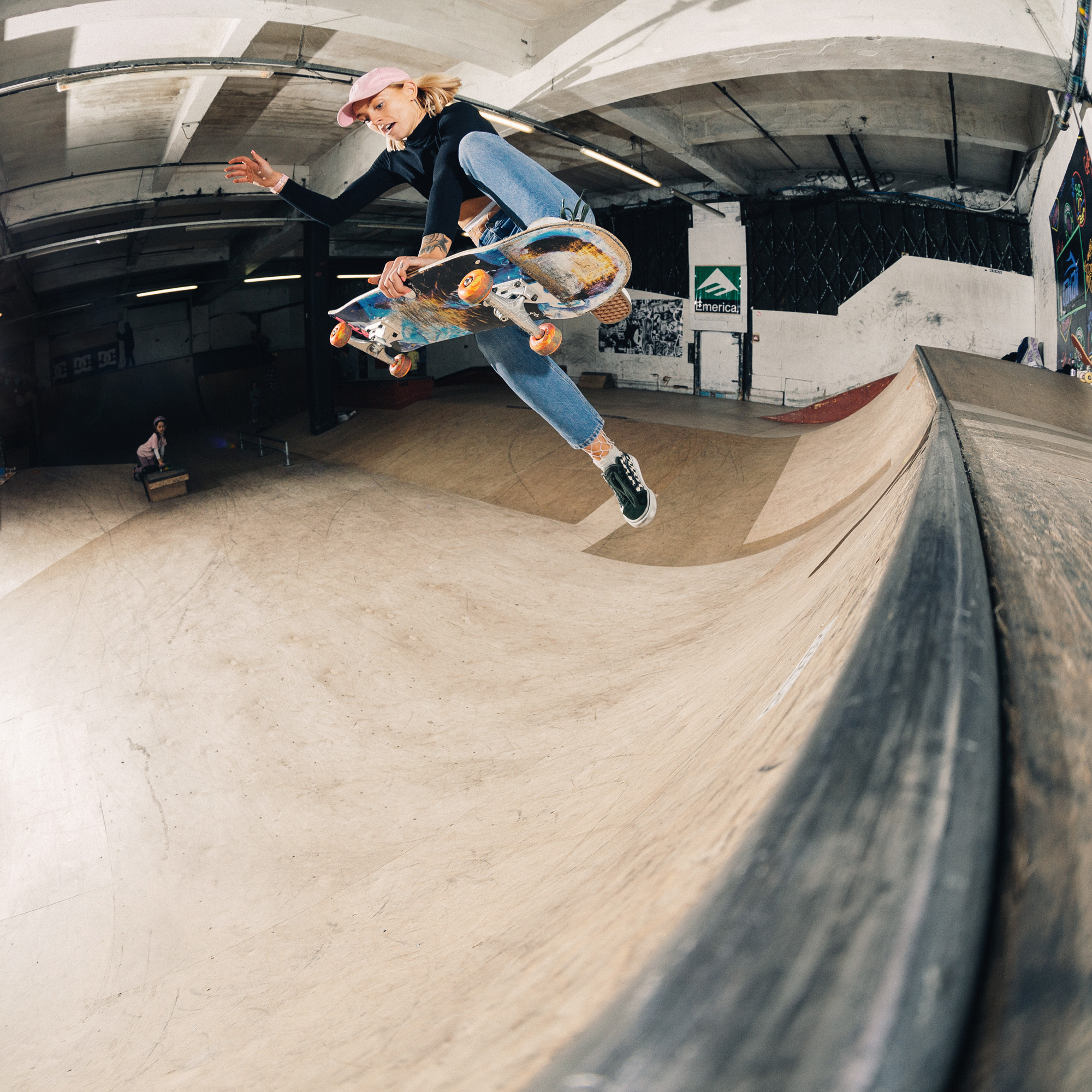 Danni: A lot of the UK girls are heading out to the CPH Pro comp this May, then there’s our annual ‘Push the Prom’ event for Go Skateboarding Day that we host with Lucy Adams – that’s a great one for beginners and families too as we take a leisurely skate along the Brighton promenade and have a jam at Hove Lagoon afterwards. There’s also the Unicorn Jam at Mile End, which is always a fun day out whether you want to enter the comp or just have a beer in the sun and watch.