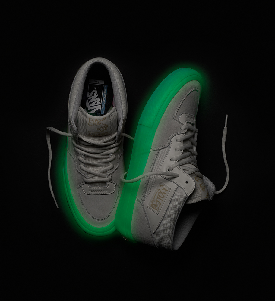 Vans Pro Skate presents a special, limited-release glow-in-the-dark Half Cab Pro inspired by Arizona-based skateboarding collective, Pyramid Country, responsible for such psychedelic skate video classics as ‘Exeter’ and ‘Love and Gratitude’ (see below).
