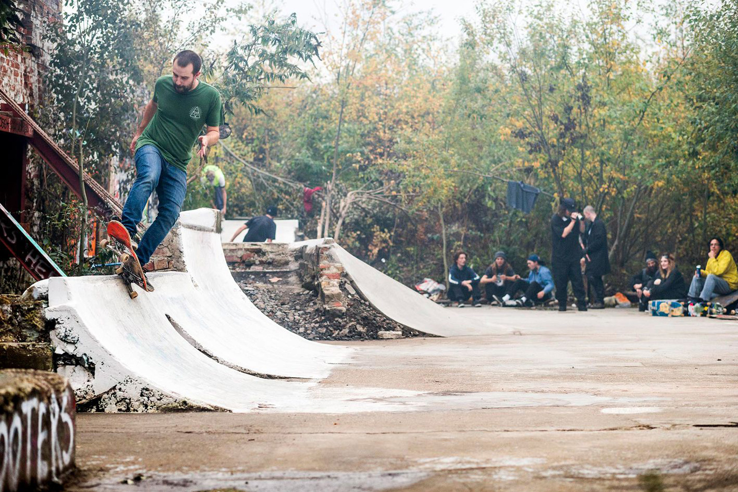 Having been up there four days ago, dodging showers for what would turn out to be the last days of it being skateable, this was a surreal sight to open the browser to. Obviously DIY spots usually have a limited lifespan, but there’s always a glimmer of hope that one or two will go the distance and even be turned legit by the council. This one was not to be, though, and Tesco sending in the hard hatted troops means that it’s on to the next one – dust never sleeps! Leeds spots both street and DIY might be disappearing at a rate of knots at the moment (see our last ‘Gone’ feature on the iconic Man Bank), but the group behind the Dustbowl aren’t stopped that easily.