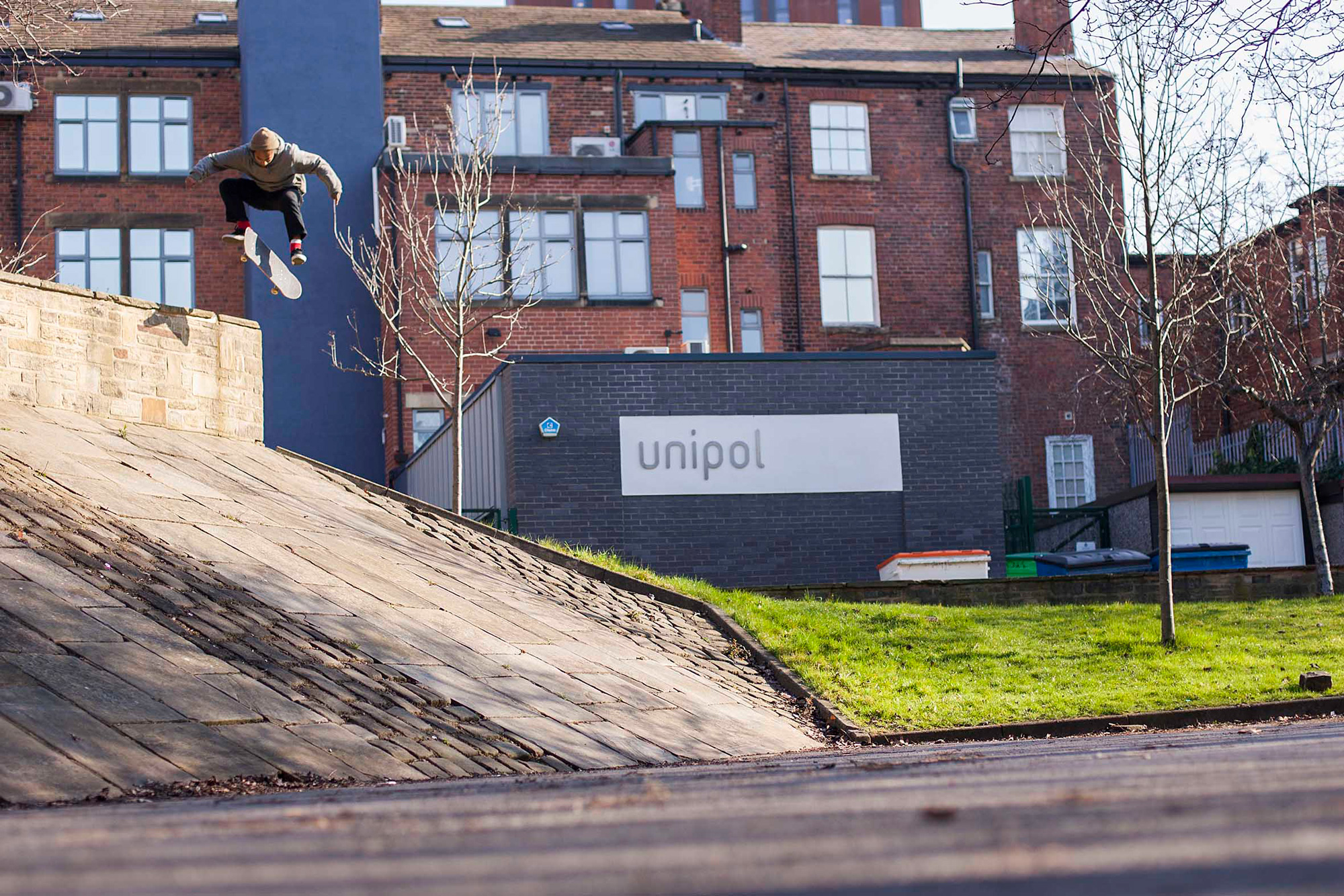 The background to the spot’s name comes from Paul ‘Man’ Silvester’s onslaught on the previously untouched skateable architecture of Leeds, (and notably the architecture in and around Leeds University) from the late 90’s and onwards.