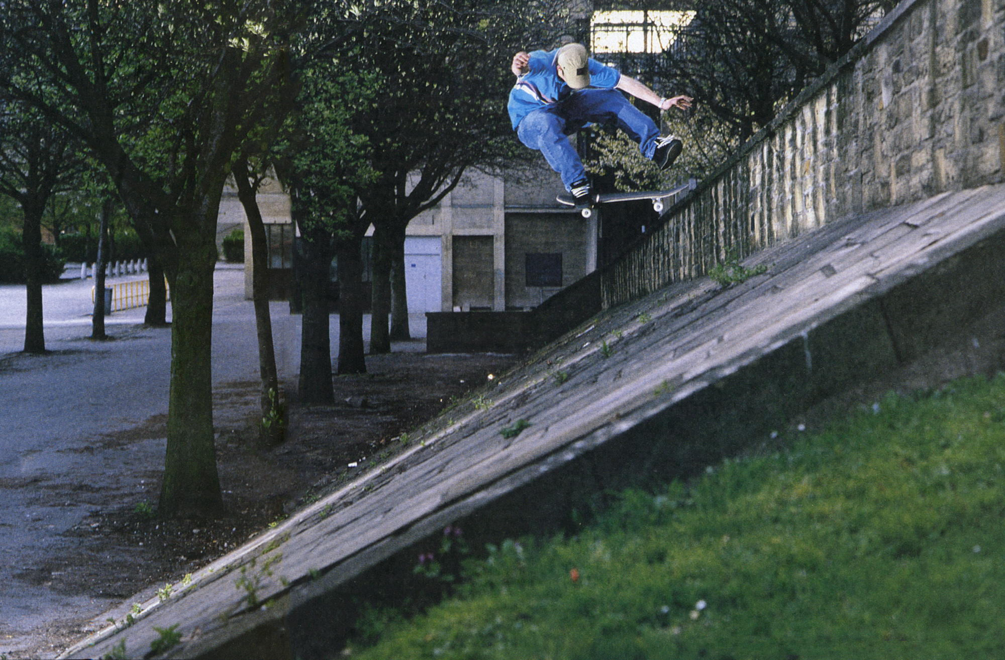 First brought to the attention of the national skateboarding consciousness in 1997, the ‘Man Bank’, (or the ‘banked wall by the cherry trees in the Orange Zone University carpark off Lodge Street’ to those unaware of this decrepit stone monolith’s alternative life as a skate spot) is sadly no more.