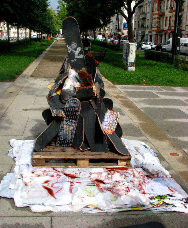 We came across this on the last day at the bench spot. We were told a skater had been killed there the night before. This was a memorial for him by a friend. RIP.