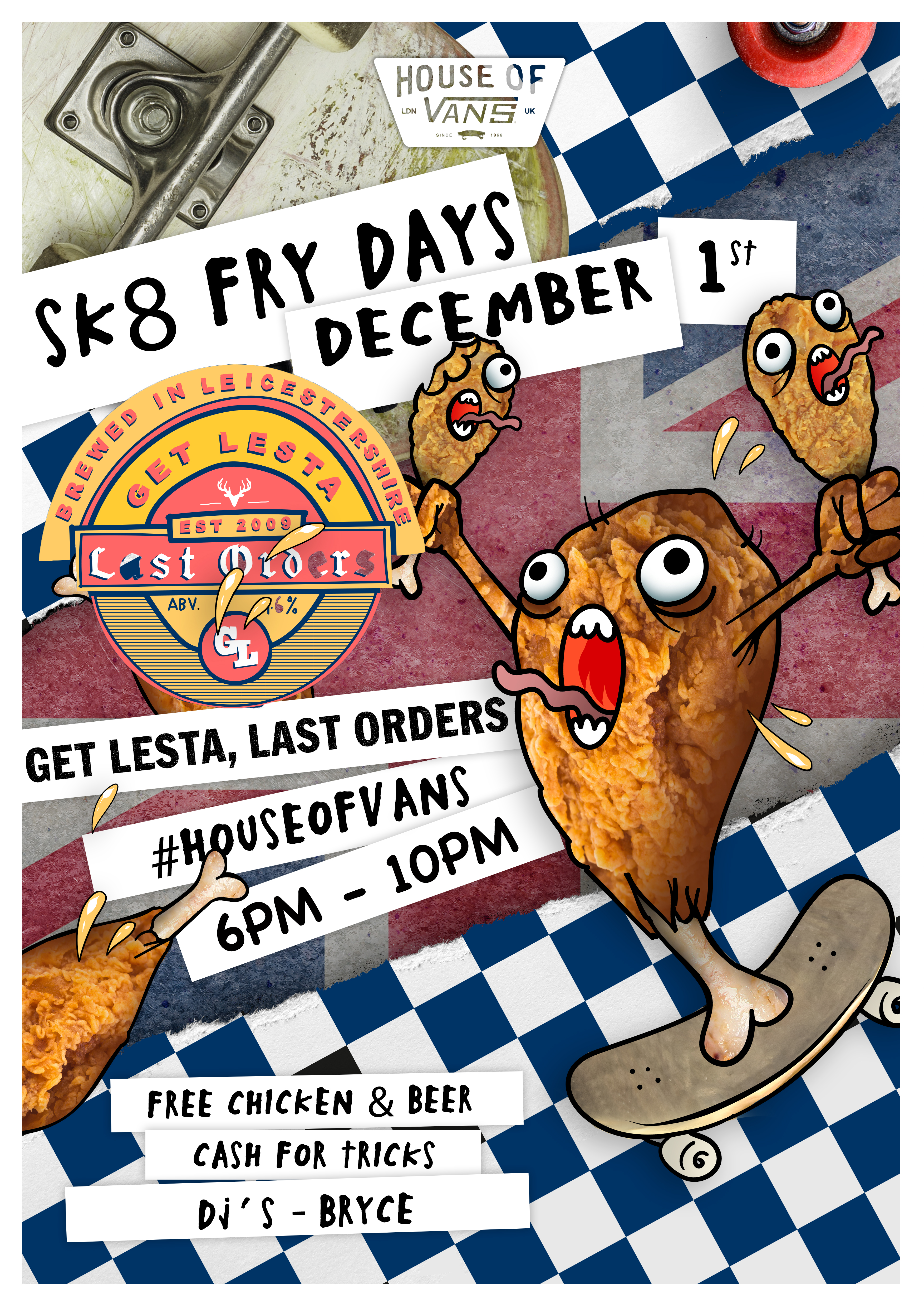 Join House of Vans for the usual Skate Fry-days shenanigans on December 1st, this time to celebrate Get Lesta’s new video Last Orders, which will be premiering in the cinema.