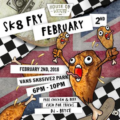 Join House of Vans for all the usual Sk8 Fry-Days shenanigans on February 2nd.