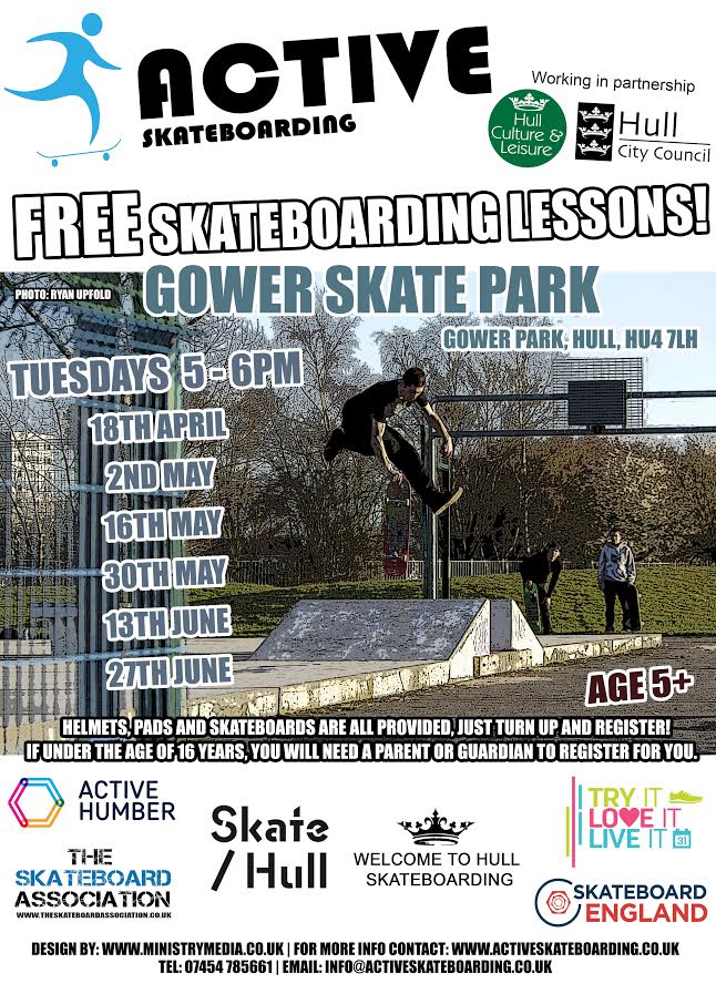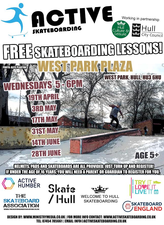 Alongside the skate jams which Hull will be hosting from late July through August, there will be free skate lessons running on Saturdays, Wednesdays and Thursdays where kids who want to get into skating can be coached by Paul Regan on the basics. Details on the lengthy list of dates can be seen on the flyer below, while the skate jam details can be checked out here.