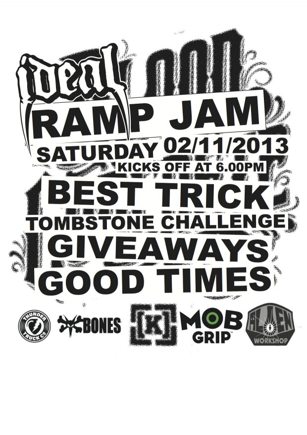 Ideal Skatestore in Birmingham are holding a jam on their mini ramp on November 2nd – check the poster for specifics and get yourself involved!