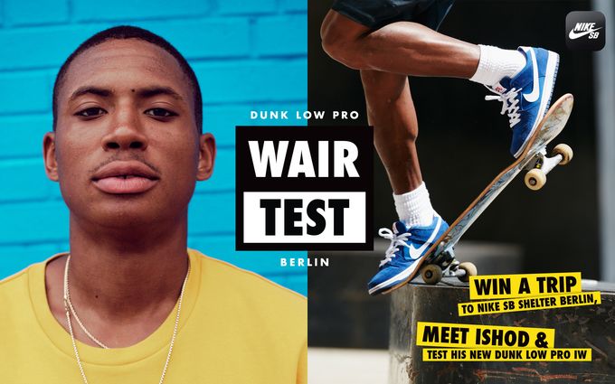 On January 19th 2016 Nike SB celebrates the launch of the new Dunk Low Ishod Wair at the Nike SB Shelter Berlin. There the new shoe will be tested together with Ishod present and this is why Nike SB is looking for you!