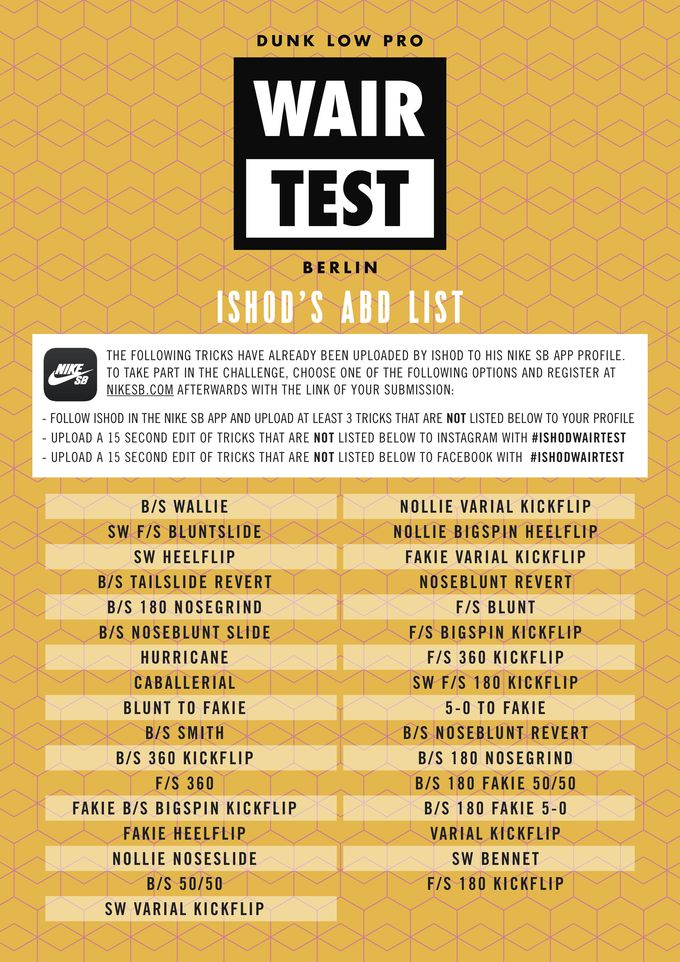ATTENTION: The challenge is about helping Ishod to complete the whole Nike SB App Trick Tree. So only tricks will be counted that are still missing from Ishod’s SB App profile. You can find a list of his already checked-off tricks below.