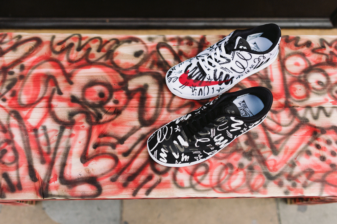 The collection features Nike Free SB shoes in two distinctive colourways – the black/white Nike Free SB PRM (RRP £85) and a white/gym red/black Nike Free SB R&R QS (RRP £75) along with two t-shirts, ‘Double Time’ in black/white and ‘Art Thief’ in black/white (both RRP £25).