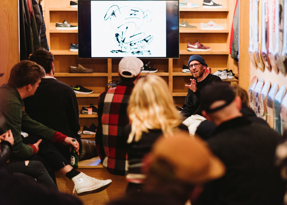 Last Friday, James Jarvis sat for a Q&A at Slam City Skates regarding his recent shoe collaboration with Nike SB. Read about the shoe in their own words below, check the clip with James Jarvis above, and click through the next few pages for some photos from the night courtesy of Maksim Kalanep…