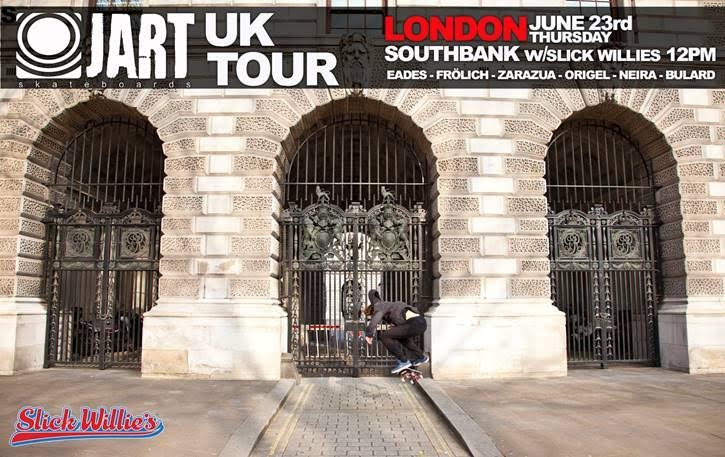 Slick Willies have just dropped their latest monthly edit, with June seeing the usual London spot hunting with Josh Mayson, Josh Ward-Brickett, Jamal Bendriss, Liam Courtney, Abdul Adebayo and Husayn Smart taking place. On top of this, they will also be hosting a Southbank jam in association with Jart Skateboards tomorrow – peep the edit, then the flyer below for details…