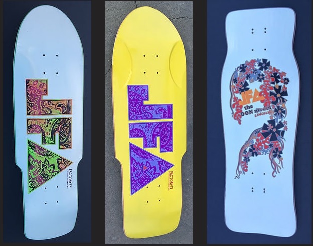Skaterock legends JFA will be hitting the UK this August, offering the opportunity find out about Danny Sargent’s Trucks and shout about being Preppy in a live setting (in between some skate tourism of course). Things kick off at the Underworld in Camden on the 4th before heading west to Bristol to pre-hype the Dean Lane Funday in style (more info on that soon) and then aiming north for Rebellion Festival. Amongst the usual merch there will also be limited edition JFA boards courtesy of Factory 13, along the lines of the ones you can see below.