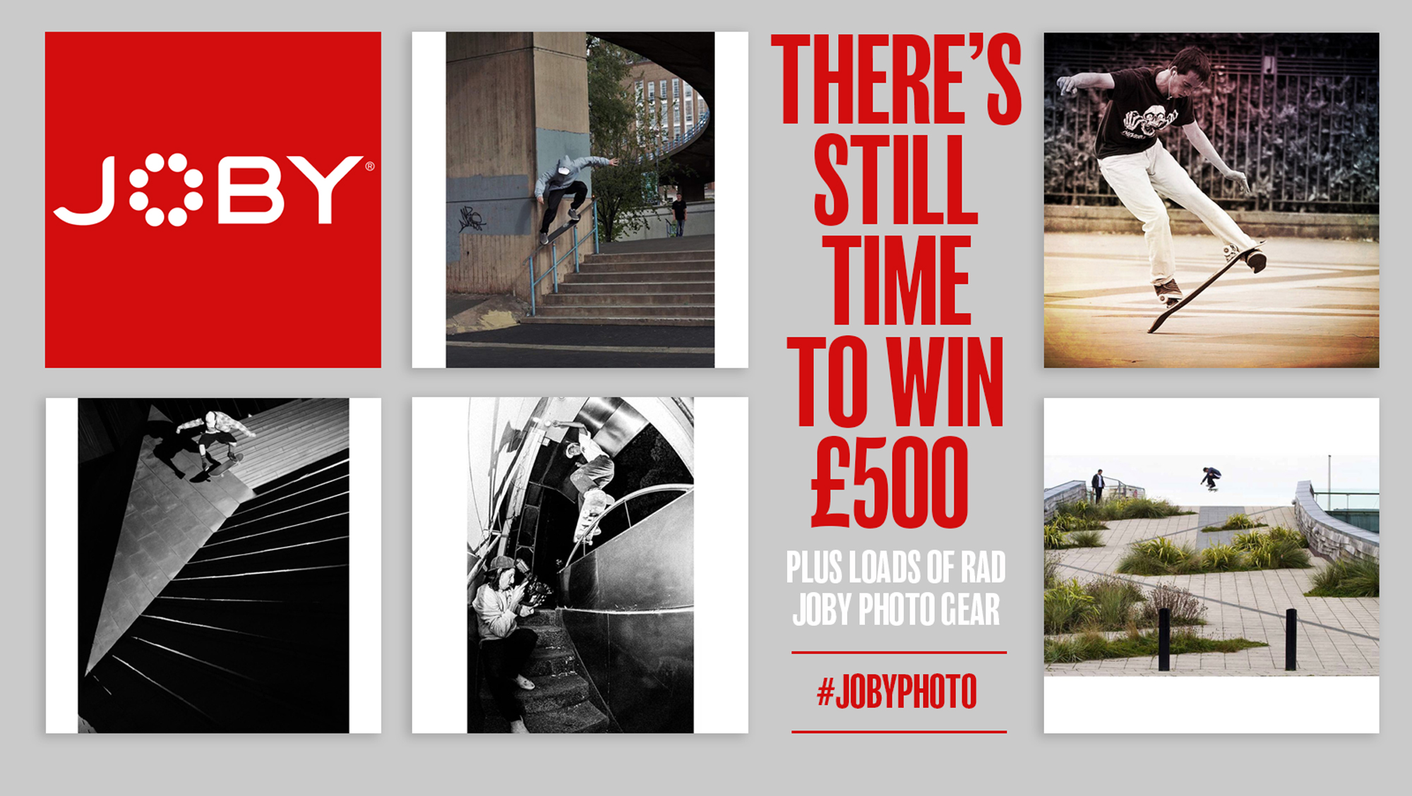 Putting yourself in with a chance to win is simple – just add the hashtag #JobyPhoto to your skate photos on Facebook, Instagram or Twitter and we will pick our favourites. Get tagging!