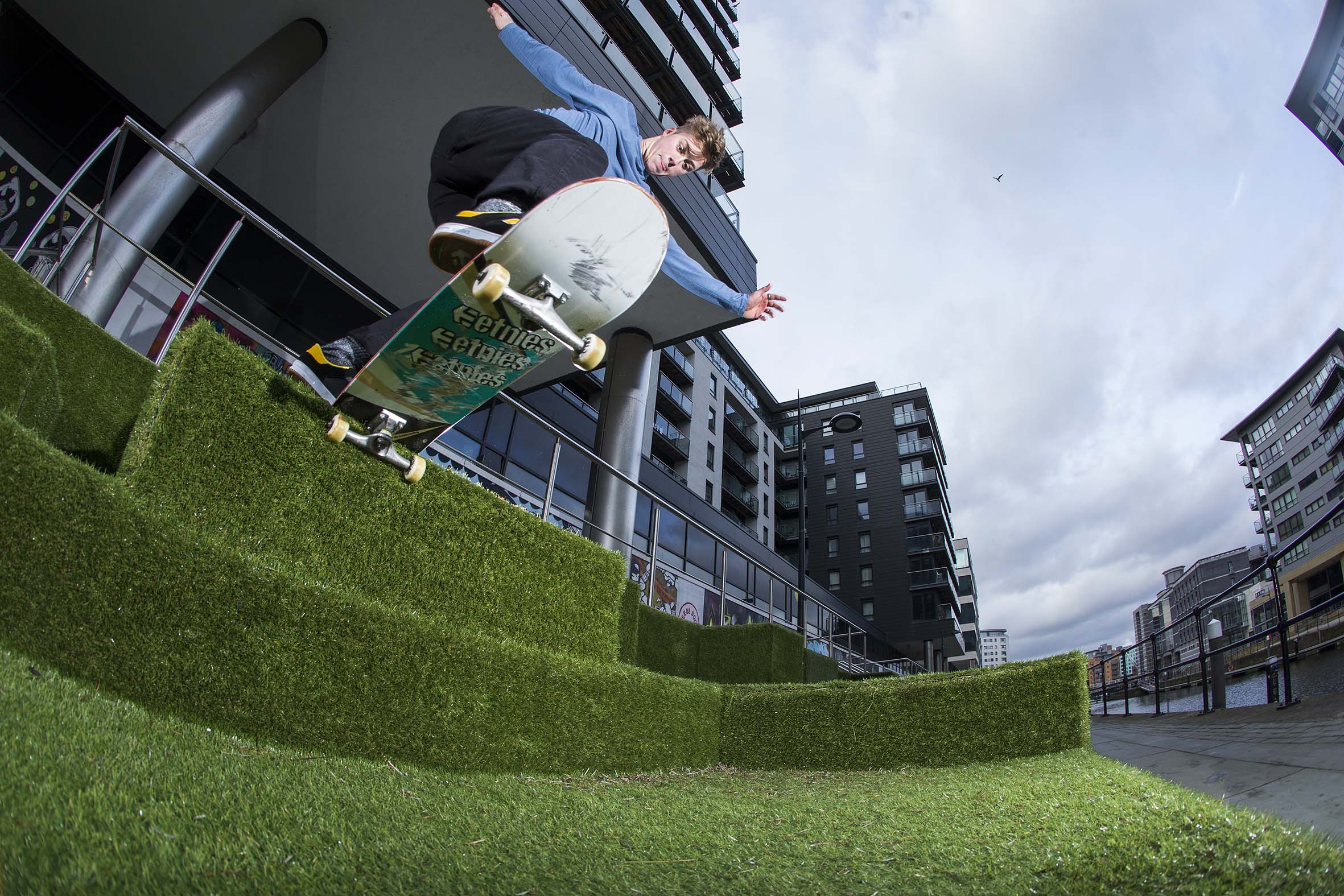 I’d say that Dale really surprised at times due to his level of his commitment. The one trick that got away was the wallie blunt flip fakie at the Waitrose bank in Sheffield. He spent hours and hours trying that trick and landed on it so many times. At least three of the sessions finished with him not being able to walk properly, never mind push on his board. He knew he could do it and wanted to land it so badly that he refused to stop until his body gave up. People have this misconception of Dale and believe he just wants to be the guy that ‘makes it’. He’s not like that at all. Yes, he does a bit of shouting and has the odd scream now and again, but he doesn’t take himself too seriously and is always having fun. He takes a hell of a lot of shit from us on a daily basis, but he handles it all so well.
