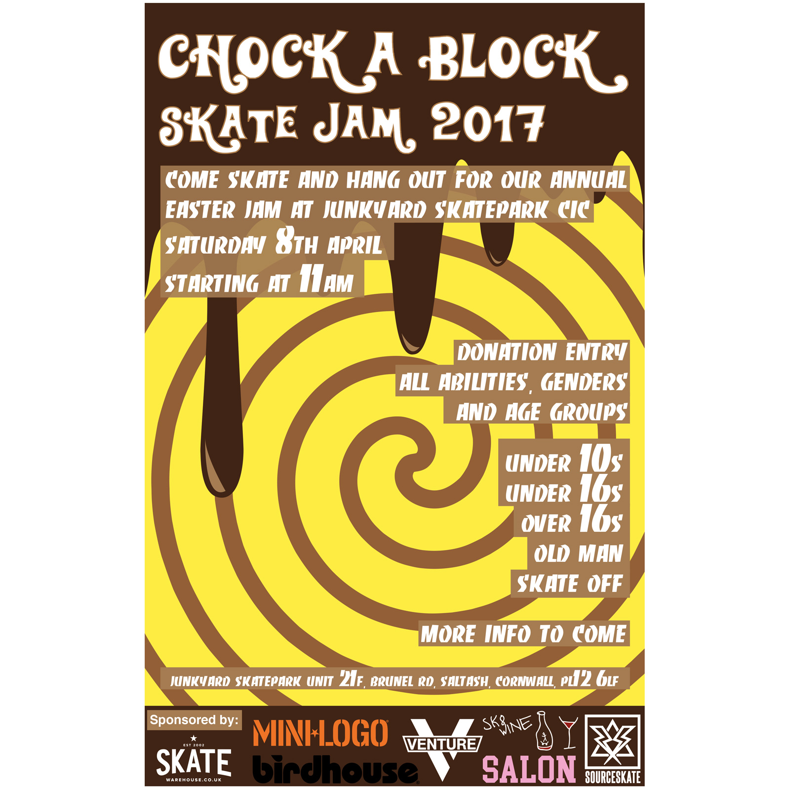 Junkyard Skatepark in Saltash, Cornwall are hosting their third annual Chock-A-Block jam on the 8th April 2017.