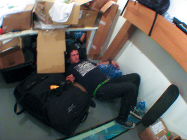 Lintell doing the Earl and Mossman taking a breather after a hectic run. Nice boardslide transfer, dude.