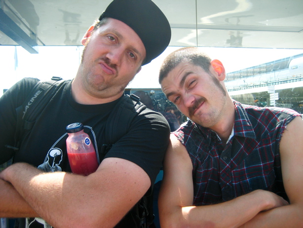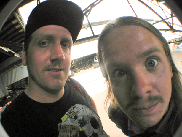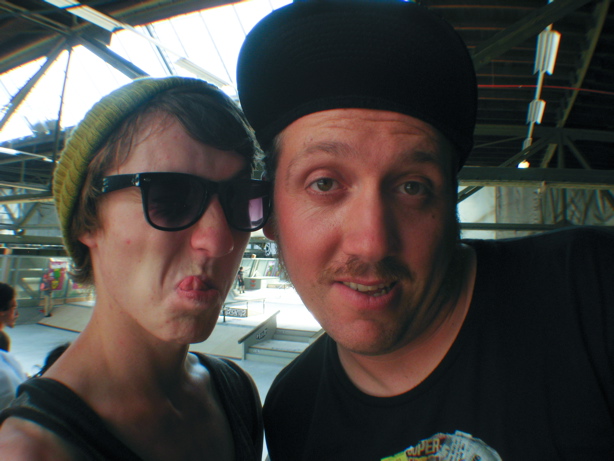 Our own Kris Vile and the Volcom photographer Jelle Keppens. Vile wishes he could grow a mustache like that.