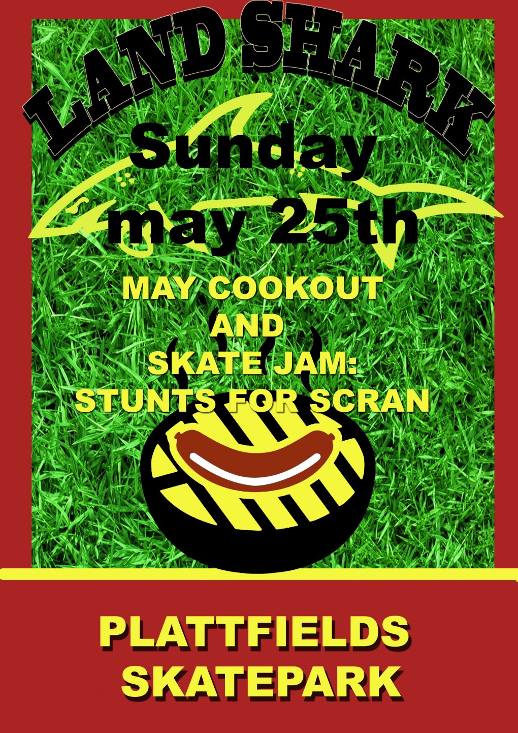 Landshark crew are hosting a BBQ and Skate Jam on Monday 26TH MAY at PLATTFIELDS PARK, MANCHESTER, M14 6LA.