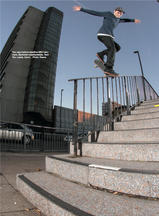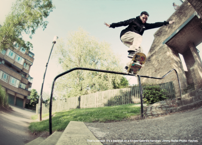 – I’d like to thank David and Bish at Fabric skateboards. Ben Larthe, Leo Sharp, Reece Leung and Johnny Haynes for all the photos. Jody Smith for the shoes and clothes. Shout out to all of you at Sidewalk Magazine – thanks for everything. Shout out to all the Skrimp Boys and the Street Gypsy Gang. All the homies! All the ladies! UK skateboarding! My little brother D-Man. Get Lesta – keep doing what you’re doing! DAMN! SGUITB out in Newcastle, NPG, La Fin Equipe! Thanks again for this Haunts!