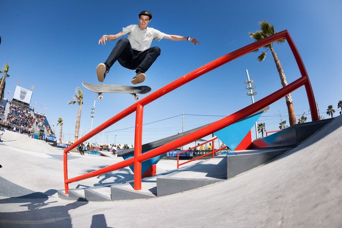 Simoes helped by a 180 switch-crook and backside over crook down the rail.