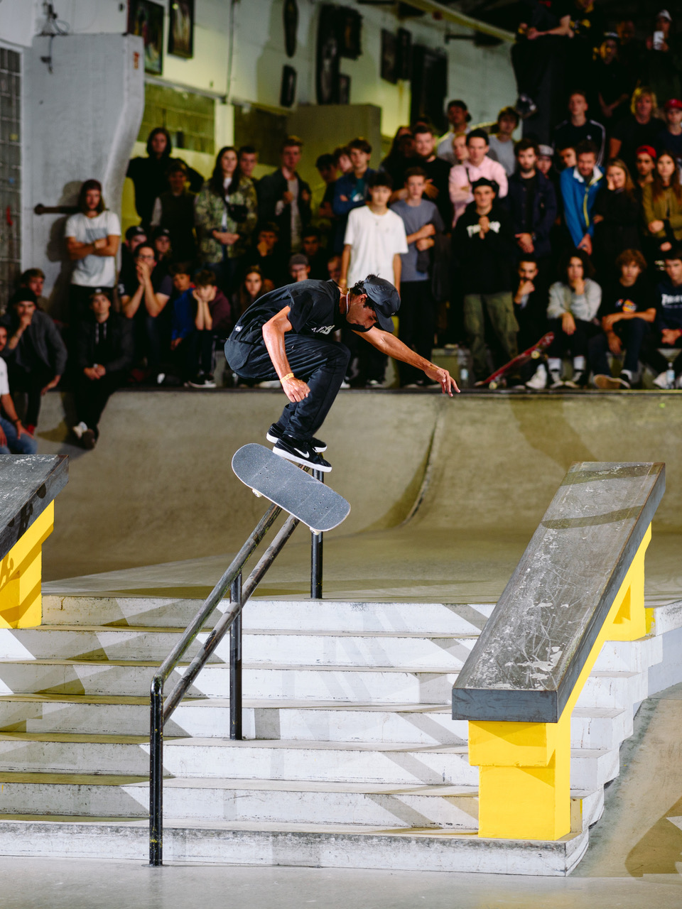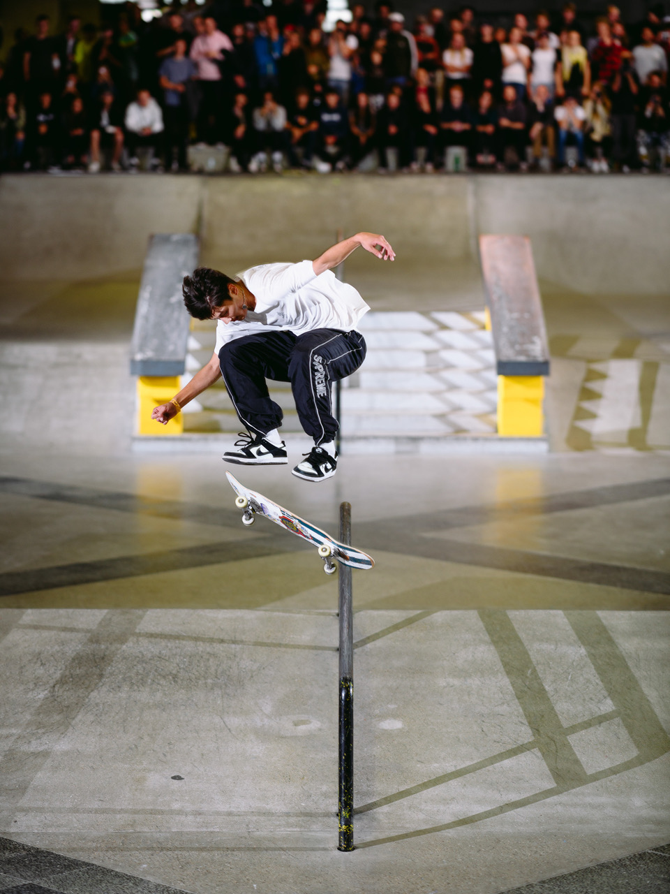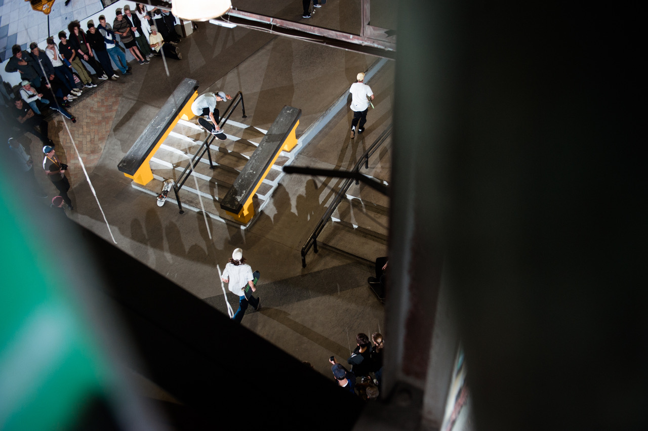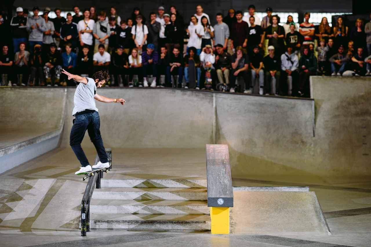 “Consistency was notched up in the Semis as the €20,000 prize purse came into reach and saw Giorgi Balhhamishvili have one of his best ever comp runs, surprising himself into the last 12 and twisting up decent hurricane on the kink rail in the process. Equally as surprised was Hyun Kummer who was just under a minute late to his heat yet casually put down an ally Oop BS flip over the A frame and kickflips to both back and frontside 5-0 down the hubba, strolling into finals.”