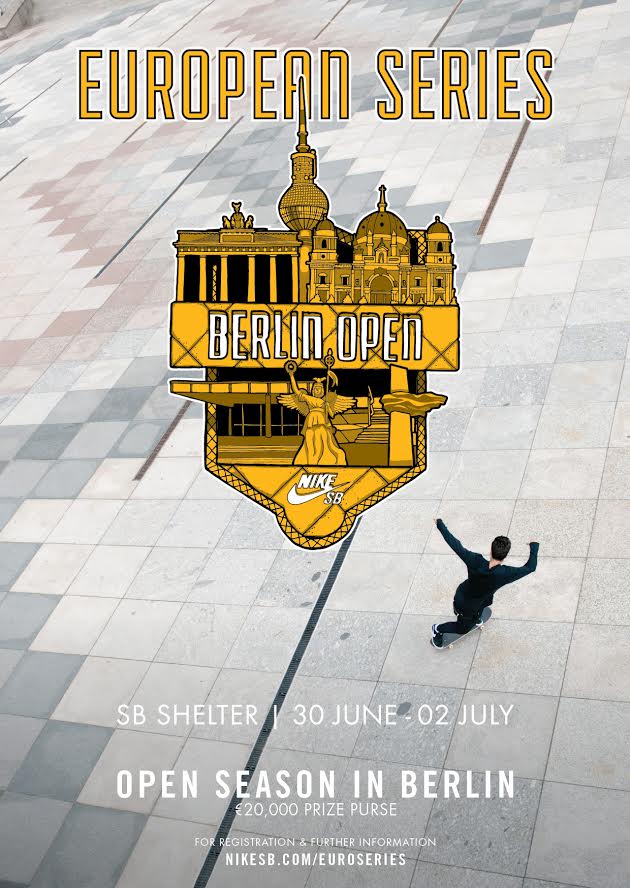 The Nike SB European Series hits Germany for the Berlin Open at the end of this month, with things kicking off at the Skatehalle Berlin from June 30th to July 2nd. Check the flyer, schedule and press release below and find more info on spectating or signing up to skate here.