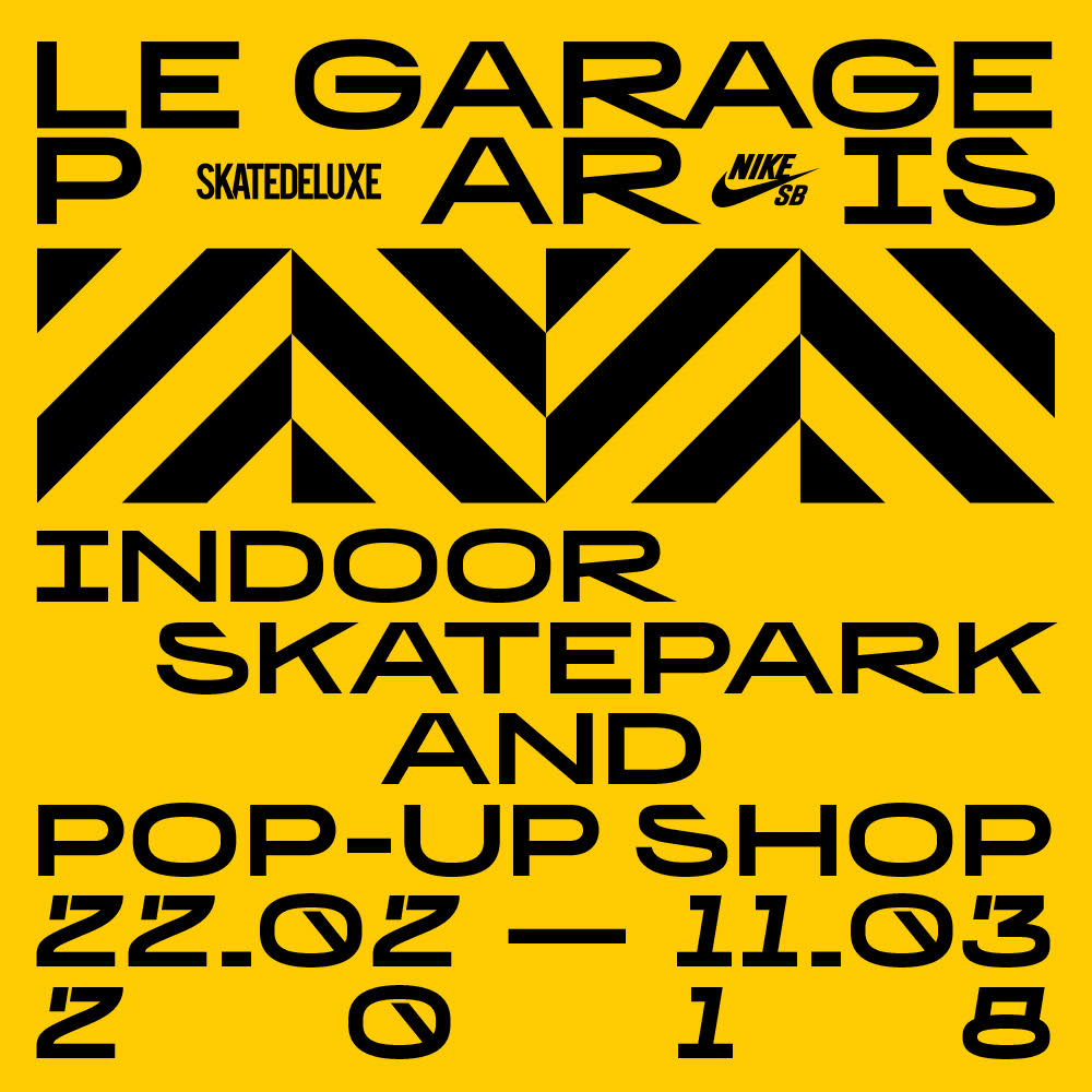 Nike SB and Skate Deluxe present Le Garage Paris, a pop up indoor skatepark and shop which will be open in the French capital from the 22nd of February to the 11th of March 2018 to help take the edge of the last throes of the winter onslaught.