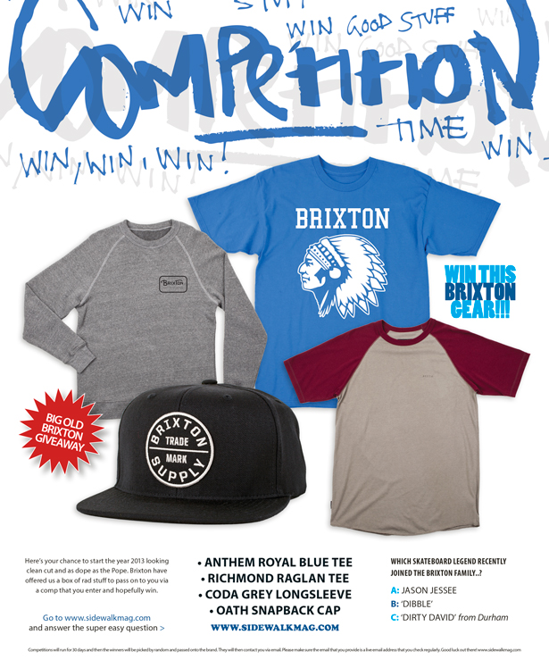 Here’s your chance to start the year 2013 looking clean cut and as dope as the Pope. Brixton have offered us a box of rad stuff...