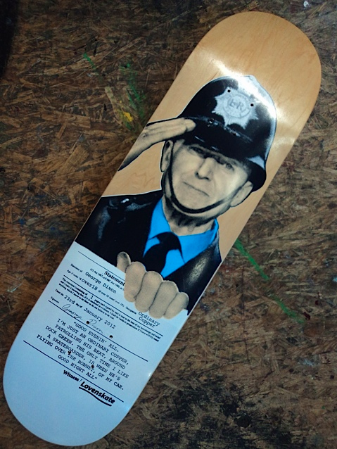 Stu from Lovenskate can do no wrong as far as we’re concerned, and his latest “Ordinary Copper” board only adds more weight to that argument. With a quote taken from a run in with one of Her Majesties finest whilst out skating in the capital, the hand screened decks that feature none other than PC George Dixon of Dock Green are available from all finer skateshops and the Lovenskate store right now!