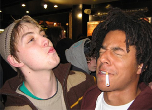 Pissed. In a hotel, With various Sole Tech types. Oh, and there’s Nicky Howells ender from the mini ramp jam too, complete with people in...