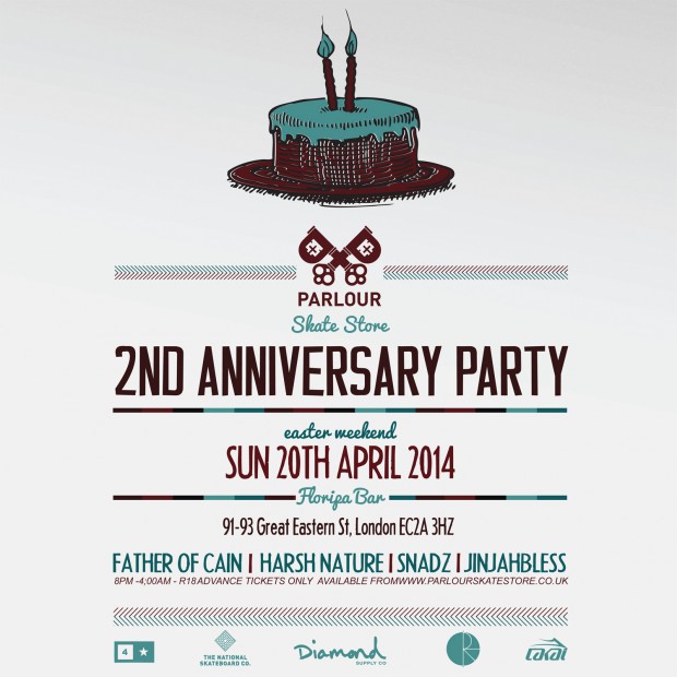 Parlour skate-store two year anniversary party over the Easter weekend details