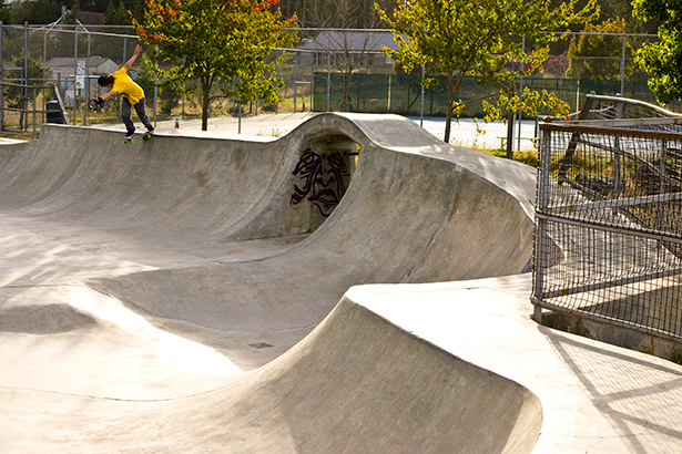 I have been harping on how good Orcas Island is to Jake for years as it is basically the best skatepark in the world. After our recent visit, I’m sure Jake will now agree. We spent all day just bombing about the snake run until the sun went down. This back tail just shows you some of the brilliant curves and lines within the park, so if you like skating transition and ever get a chance to go there you will not be disappointed.