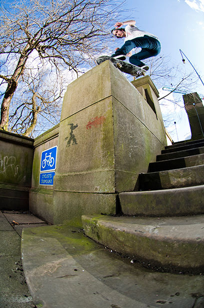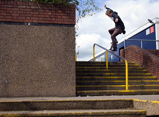 Sometimes Will decides that the time is right and he’ll get an amazing trick on a handrail. Here it was for his ender for his explosive Get Lesta part. Earlier in the day we had been in another part of Nottingham shooting Kell’s video part ender and everyone was hyped after that so we headed over to this rail. Will knew that it was now or never as far as the last few tricks for his part were concerned. He was straight on the rail with no messing around. With some serious hype and abuse from our crew it wasn’t long before he rode the perfect one away. It’s shot long and I know that kind of shortens the rail but it was the best way to show off the steez element to the trick. Really stoked on this Will, let’s see some more rail antics in the future.