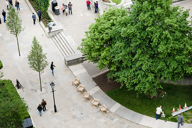 Anyway we finally returned on the last day of deadline for Nick’s ‘Word’ interview. I paid my £15 and then once again climbed the stairs to the top; it’s actually quite a lot of steps, especially if you’re carrying a load of camera gear. Mark Jackson actually helped a lot on this, not only manning the mobile phone link with Nick, but also donating his shirt so Nick would stand out better against the flowerbed. I had Nick do loads and loads of these, I was just waiting to get some interesting things going on with all the people walking in and out of the frame. As soon as I saw this one I knew we had it.