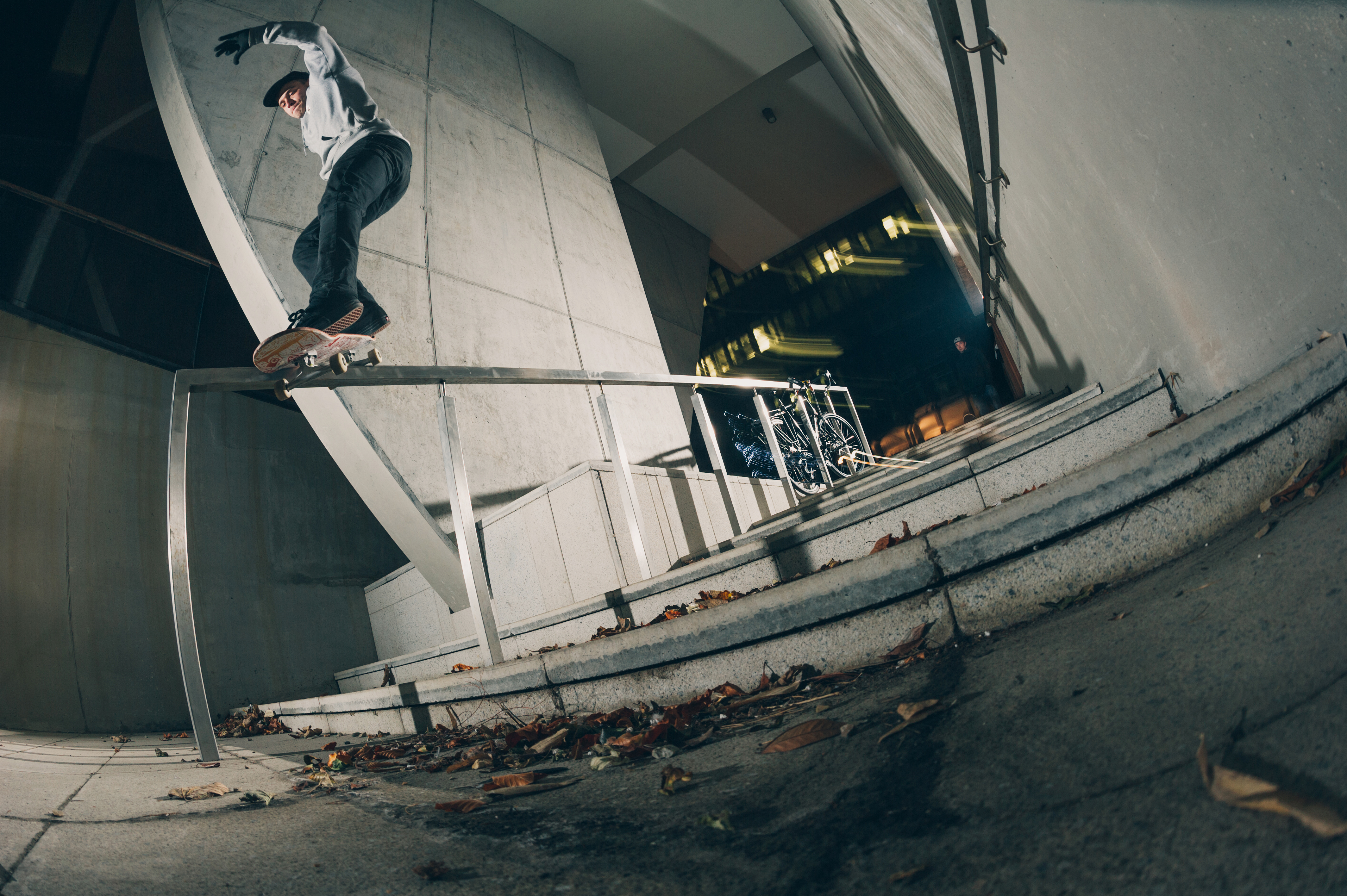 Leaving the icy depths of Northern Ireland, I arrived in Dublin to find it welcomingly warmer. Meeting up with the usual suspects it’s always good seeing old faces and the occasional the fresh one every now and again. Michael is one of those new guys that has blessed the Dublin skate scene with his forever positive attitude, funny shenanigans and Californian accent that we like to frequently rip into, but it’s all love. On one of our many adventures over the past year we ended up crew deep this day exploring the spots that surround Dublin.