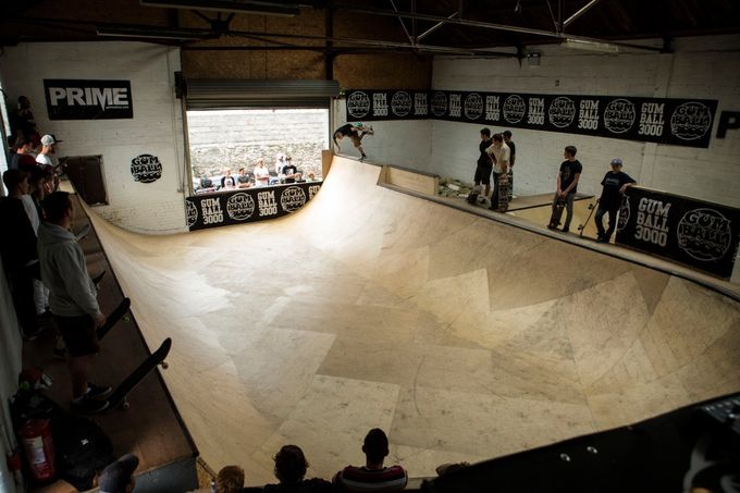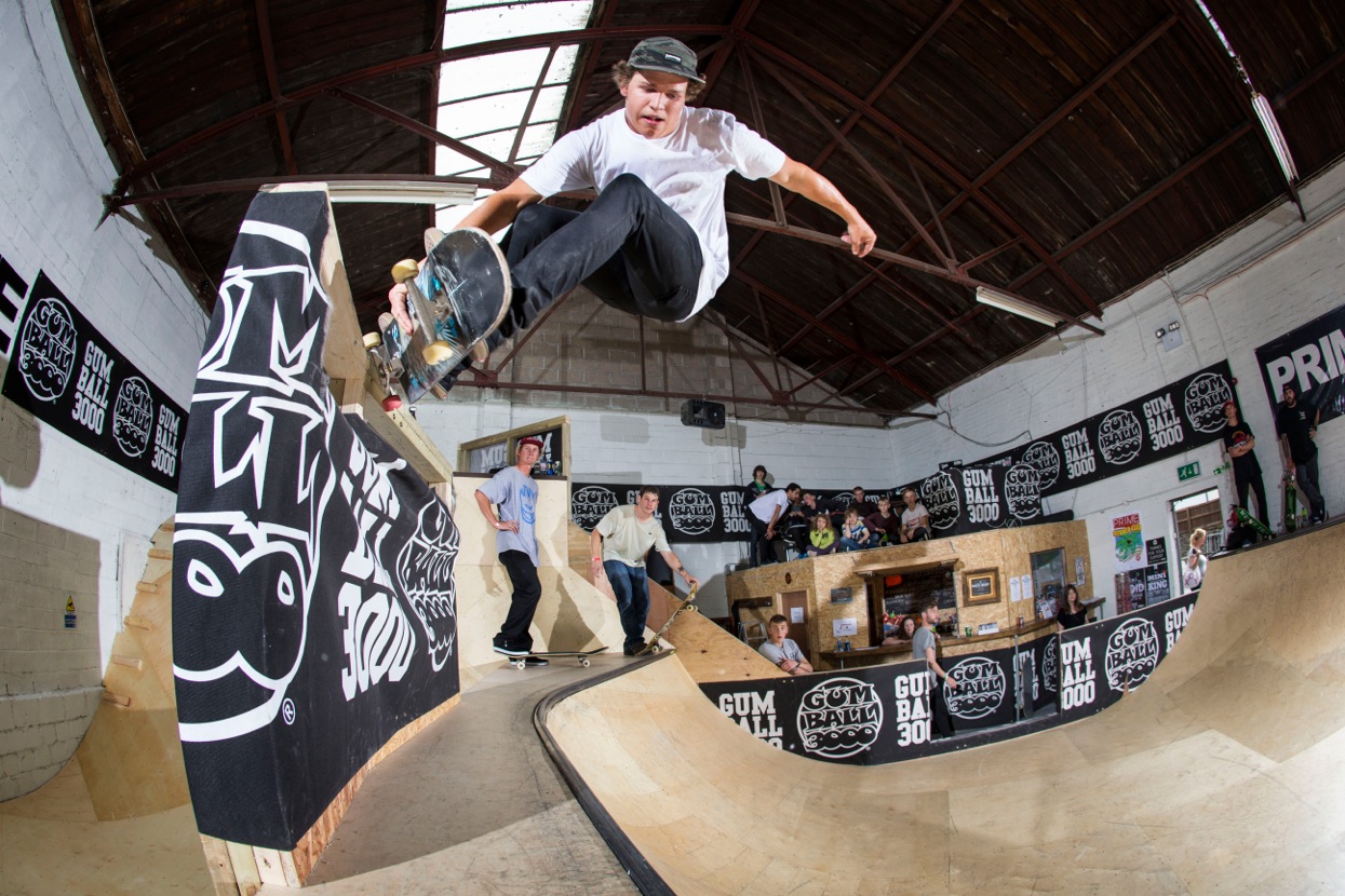 Saturday the 1st August saw us heading down into the depths of Devon in the name of Prime Indoor Skatepark‘s Mini King miniramp jam, which saw skaters from all over appearing to christen their new ramp by going absolutely fucking ham. Even a warm, sunny day outside couldn’t keep people away from the sweaty confines of the ramp, with lines being found on every corner, sub box and wall available. At a glance the ramp looked small but turned out to be whippy enough for locking in smiths (an often overlooked priority) and, with sub boxes, hips into a jump ramp area behind one of the platforms and a solid extra foot on the extension, people got the chance to get creative.