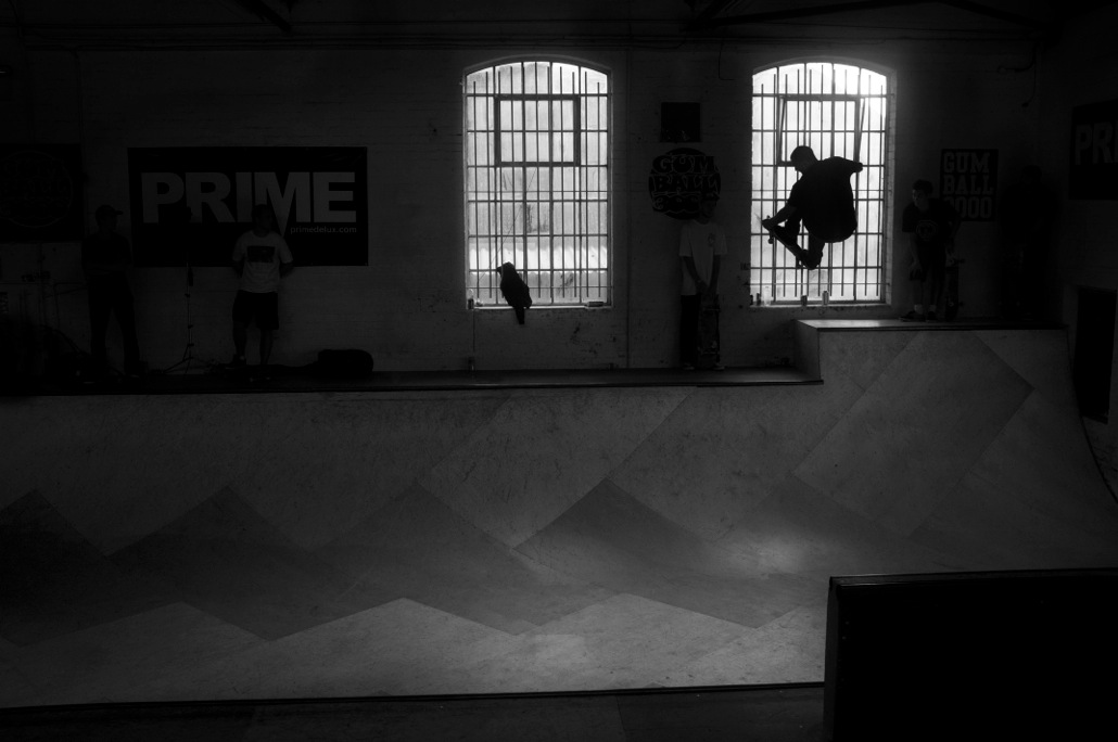 The horde who kicked things off were narrowed down to 15, with a selection of heats narrowing things down to 8. More importantly, at around this time my hangover faded enough to start drinking the beer which was on offer. The fact that people were still skating as hard as they were by this time is a definite testament to stamina, a combination of my incumbent dehydration from the previous nights fun and the heat of the ramp meant that my legs were gone to jelly within a couple of hours. Nowik, Pulley and Beer were clearly on one, but Marc Churchill‘s powerhouse grinds that made the fairly lengthy ramp look too short and Jed Cullen’s blunt fakie on the 5 foot high poster frame were high points of the session. The beers were flowing as things came to a close, but unfortunately the timing of my train meant I had to miss both the best trick comp and the serious boozing which lay ahead. Even without the closure which would finish this article perfectly it was still a shining example of how a skate comp should undoubtedly be. Cheers to Prime Skatepark for making it happen, Gumball 3000 for their financial support, everyone who showed up and killed it, and the girl on the train home who didn’t mind bizarre conversation switches between James Joyce, Nicolas Cage, Ian Curtis and Frankenhooker…