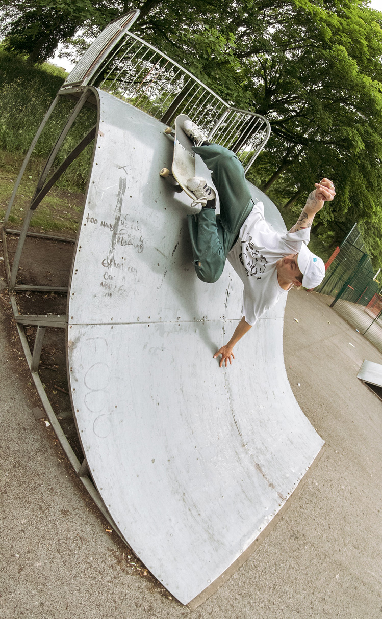 A skater from Stoke-on-Trent called Ben Evans was one of those people who responded to the call for targets for Raiders of the Lost Park episode 2 and offered up two bizarre-looking skateparks near his home which we duly elected to go and visit. With the Welcome Skatestore crew, plus a couple of Barnsley and Derby heads in tow, we turned up at Tunstall skatepark to be greeted by what looked at first like a load of unskateable scrap metal dumped on an old tennis court. However, as with the first mission, things slowly took on a different hue as people got their heads around the park and began to enjoy its weird offerings.