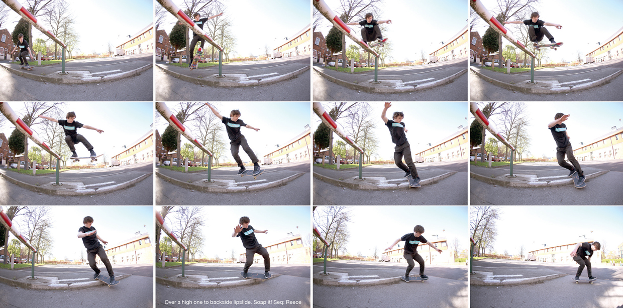 Over a high one to backside lipslide. Soap it! Seq: Reece