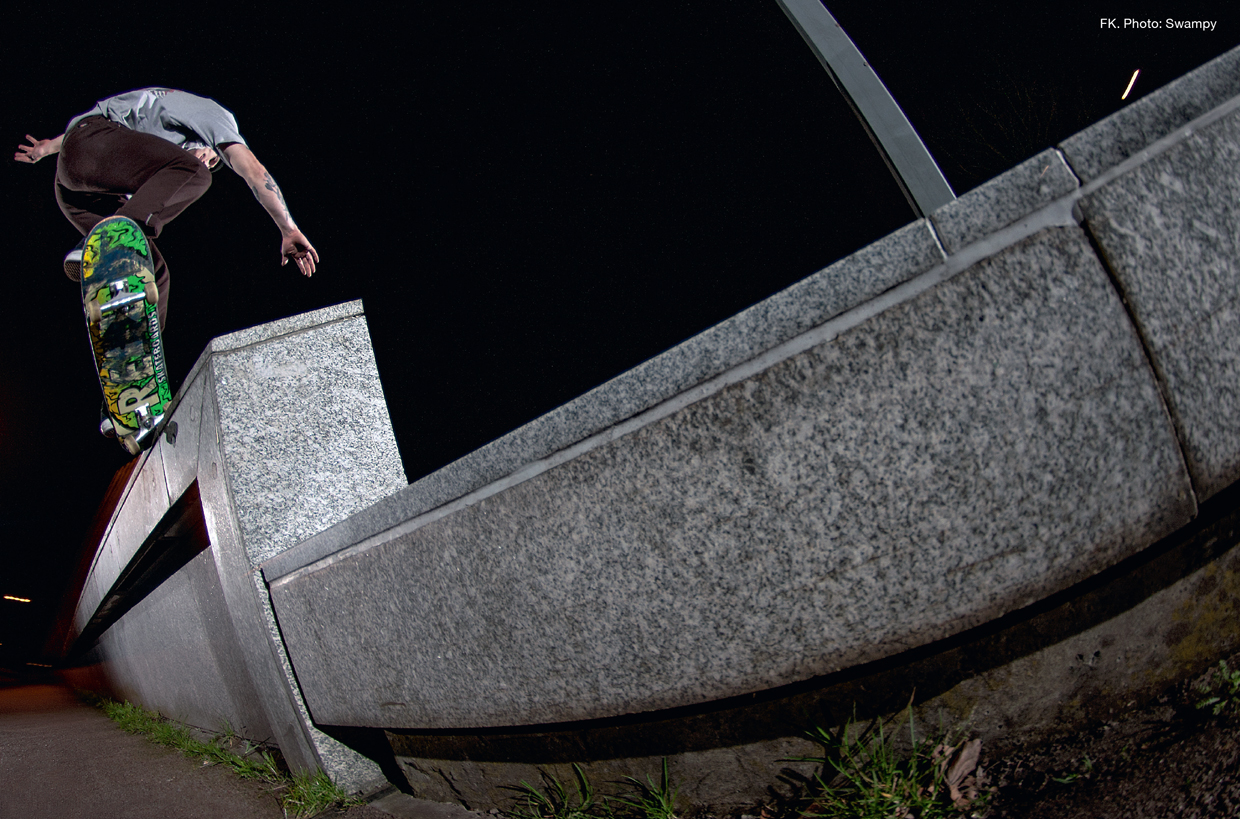 Robin straight kills it, and that’s not new information, he has killed it since I can remember. Not only does he kill it but he is also a stand up guy, always up for a laugh. It’s a mad thought that he didn’t have a First Light years ago, but that’s just a testament to the fact that he skates because he enjoys to do so rather than for recognition. It’s a difficult feat to be as inspiring on the board as Gucci is – there’s nothing better than watching somebody bomb round at 100 miles an hour doing tricks with as much control and power as Robin has when he skates. Every trick he does, is done properly.