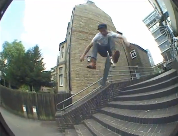 Following his appearance in yesterday’s edit from the Sidewalk X Santa Cruz “Xmas Pool Party” at The XC, Hemel Hempstead, UK legend Sean Goff has scored himself a “Visitor” interview on SkateMalmo.