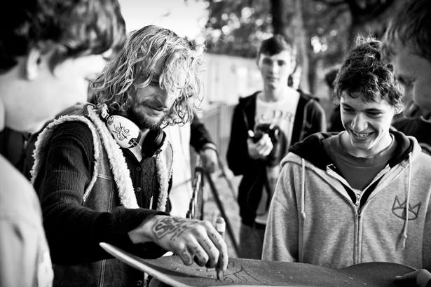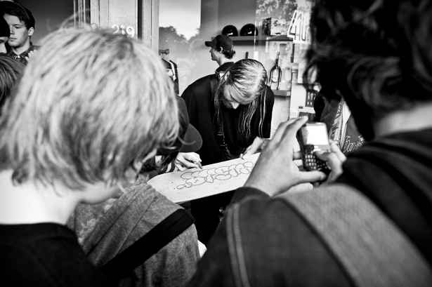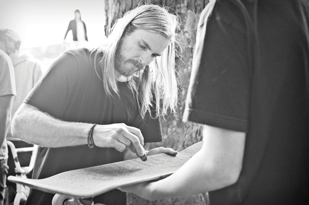 With the sun breaking through and the demo back on, Chad took care of more signings before finding solace in the van.