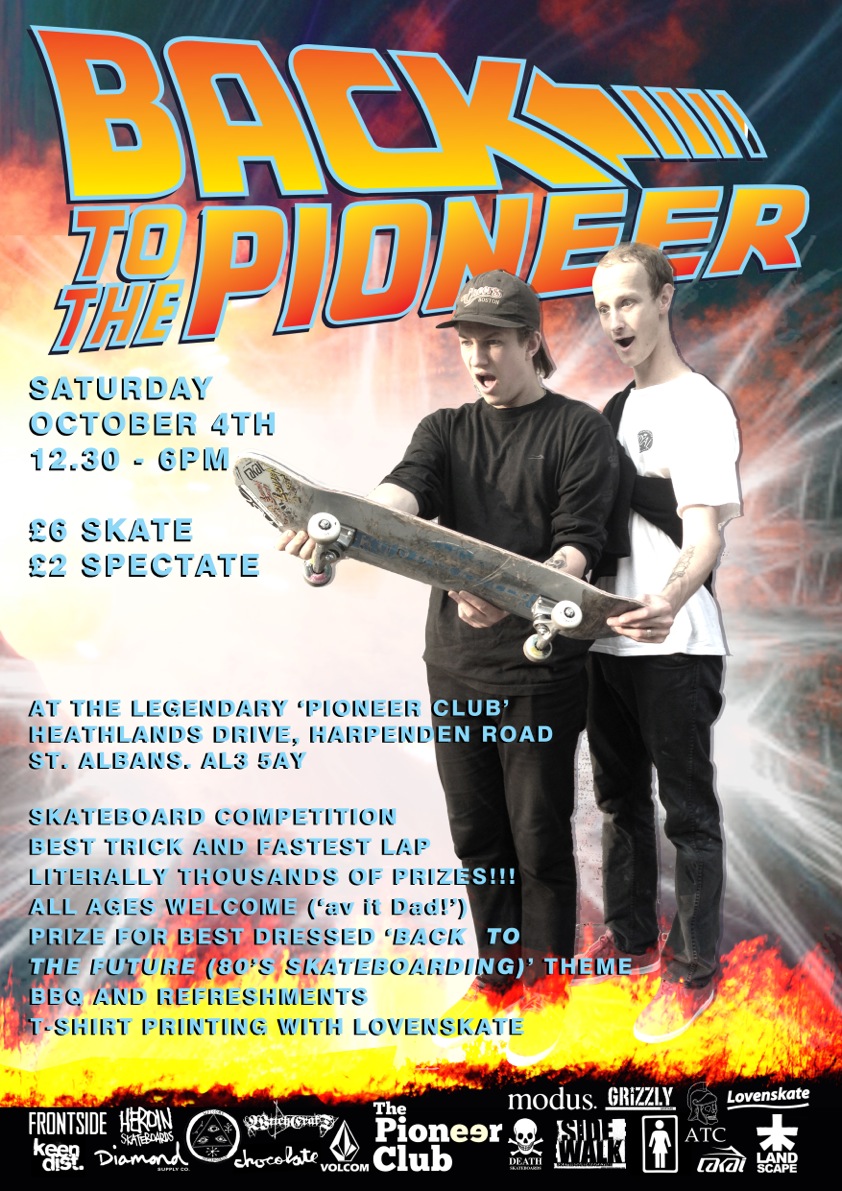 Pioneer skatepark are hosting a back to the future themed jam (RAD) on Saturday 4th October 2014 and will have an arse load of prizes to give away!