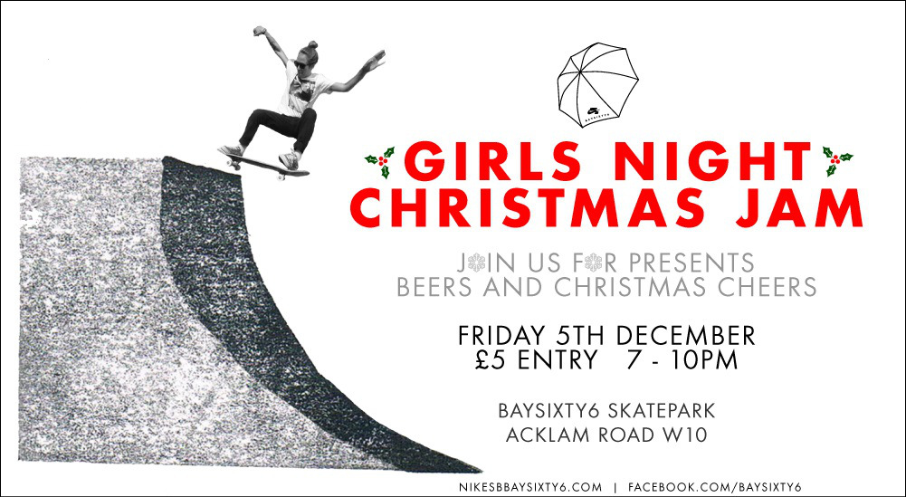 5th December Nike SB BaySixty6 skatepark will be hosting The Girls Only Christmas Skate Jam in association with Girl Skate UK.