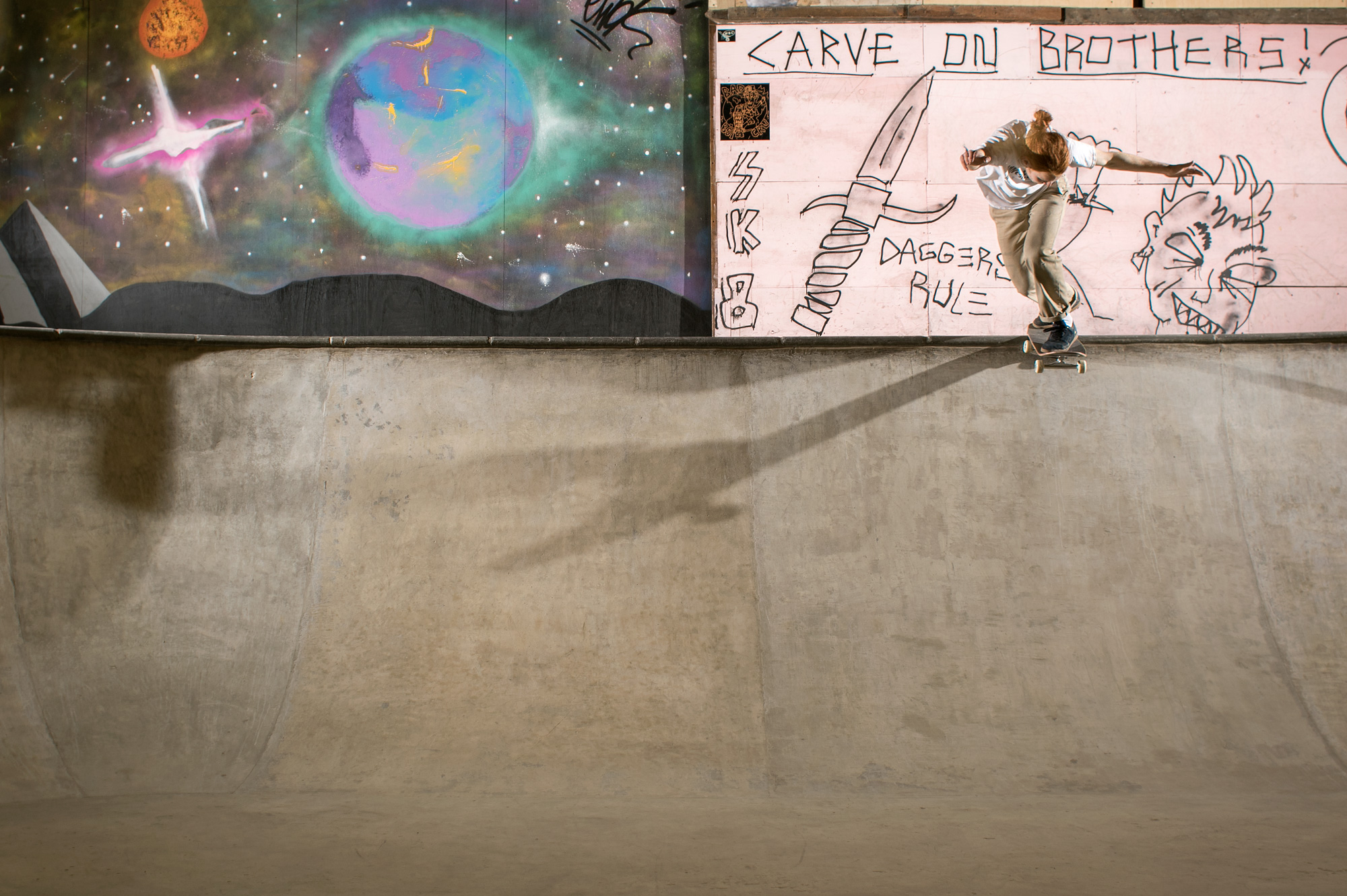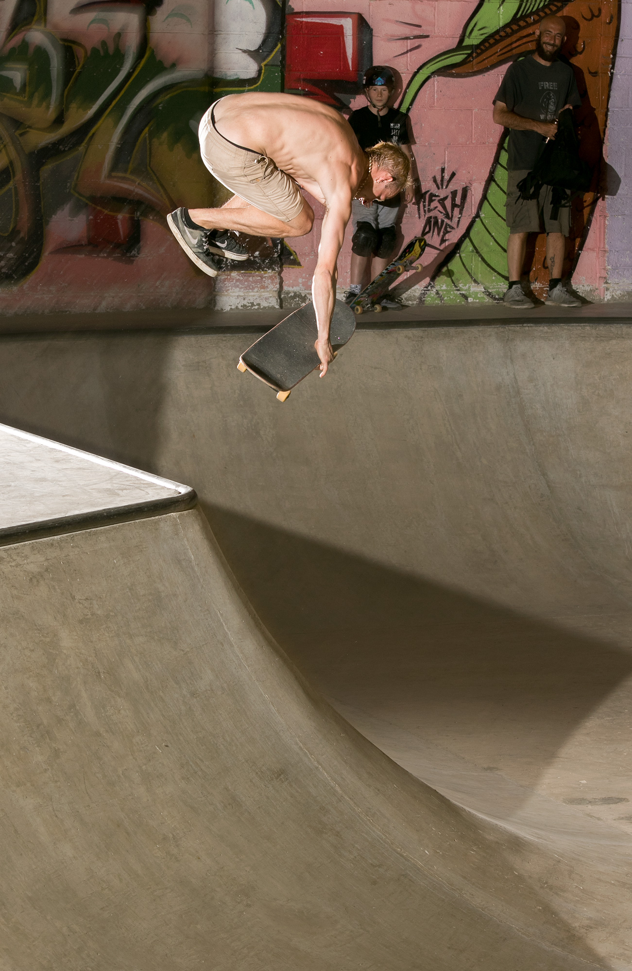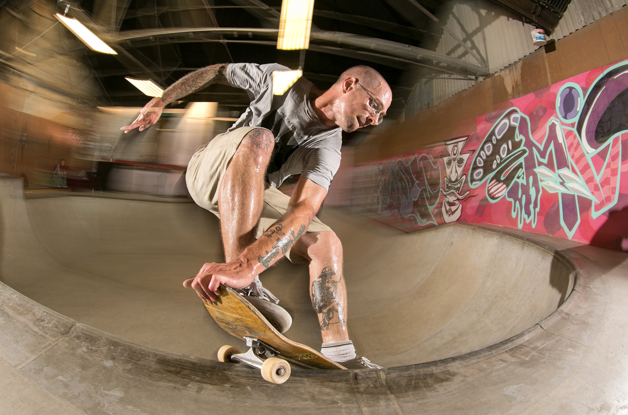 The weather didn’t deter a solid crew from attempting to hurt themselves in the name of skateboarding and the band list was soon condensed and crystallized into Sheffield garage punks Rob & Natas and Leeds-based raging hardcore assault of Hex. Dean Greensmith, Brendan Watson and Jozef Szklaruk fed off the tunes and each other and annihilated every corner of the bowl, somehow without annihilating themselves despite pushing the session to the edge of crash test carnage.