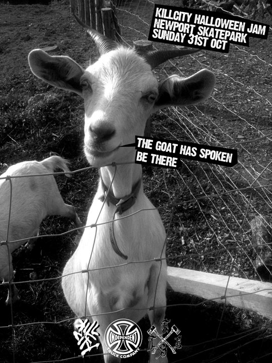 Sorted anything out for Halloween this year yet? No? Good. Dainton and the Kill City boyos are ordering you to head to Newport skatepark for an epic bowl jam, including a variety of best trick style prizes and plenty of boozing, with Dainton’s goat calling the shots and overseeing proceedings.
