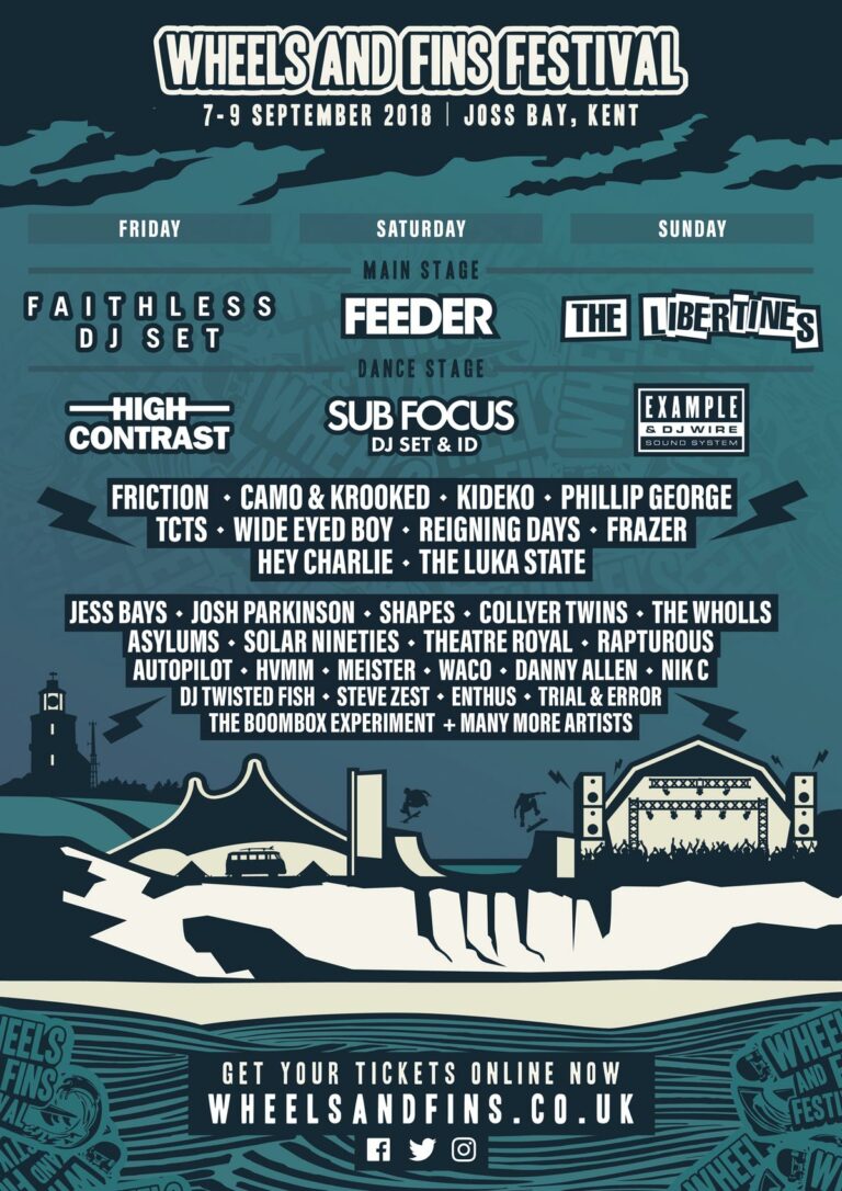 Wheels and Fins Festival 2018 headliners announced - Faithless with a DJ set on Friday, Feeder on Saturday and The Libertines on the Sunday.