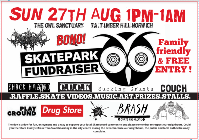 The Owl Sanctuary in Norwich will be hosting a fundraiser to try and kickstart a new indoor park and gig space in Great Yarmouth on...
